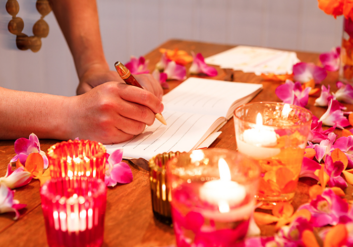 芳名帳の周りに花びらを散りばめて…