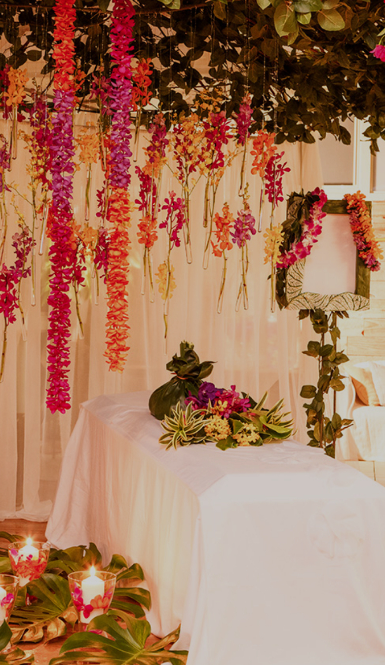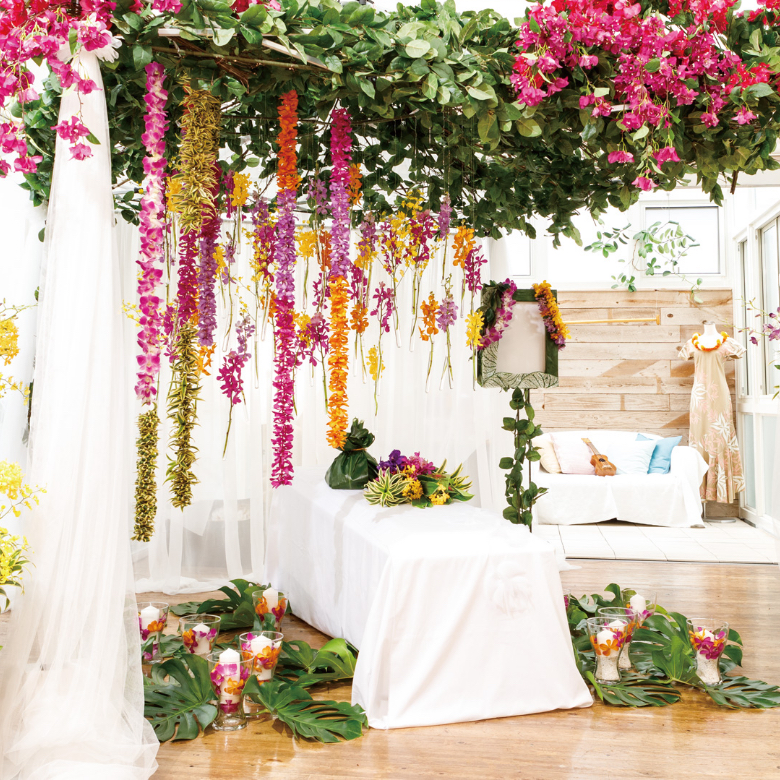 ハワイへの憧憬を彩るフラワーデザイン祭壇。
