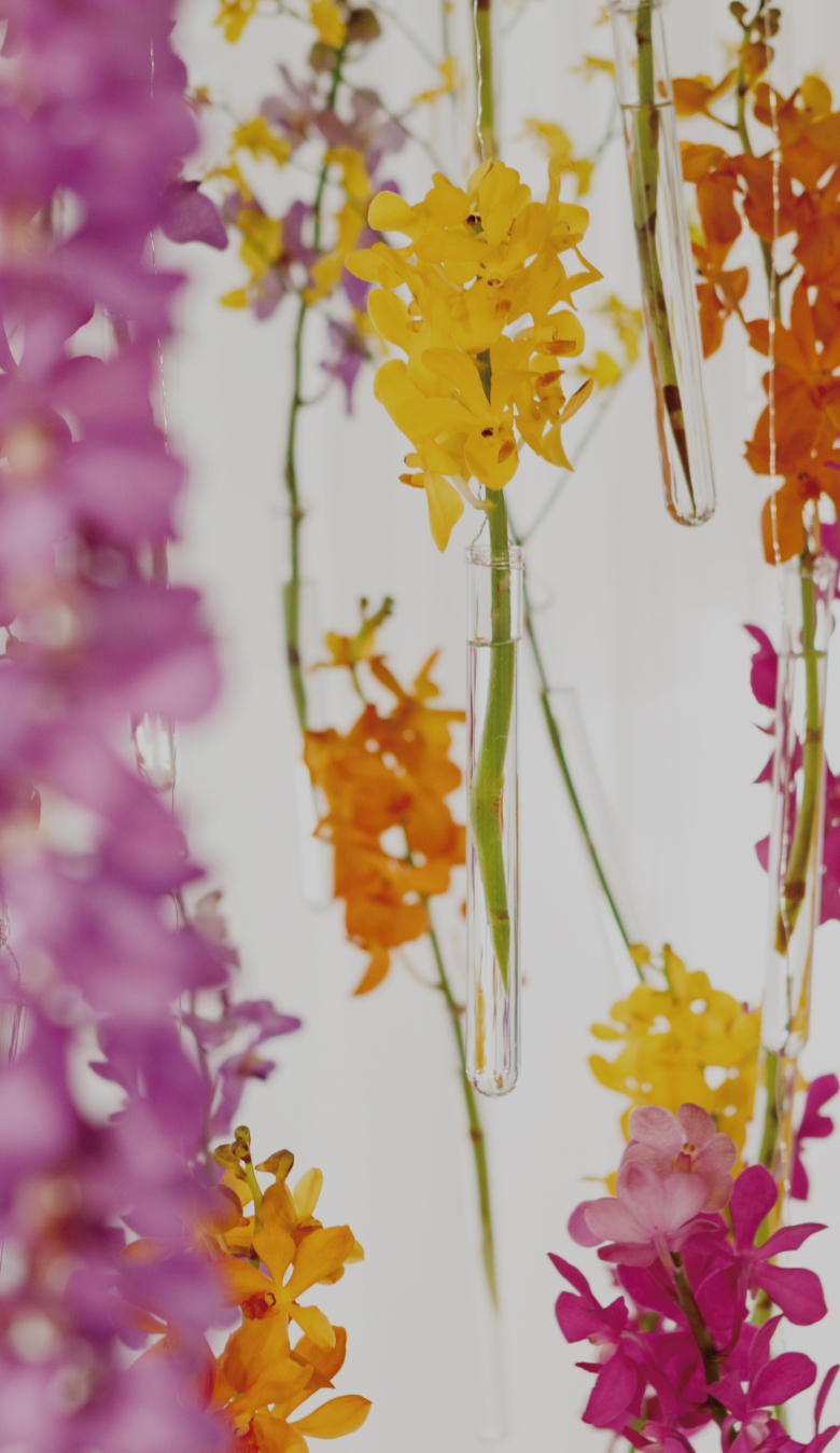 色鮮やかな花々に抱かれ